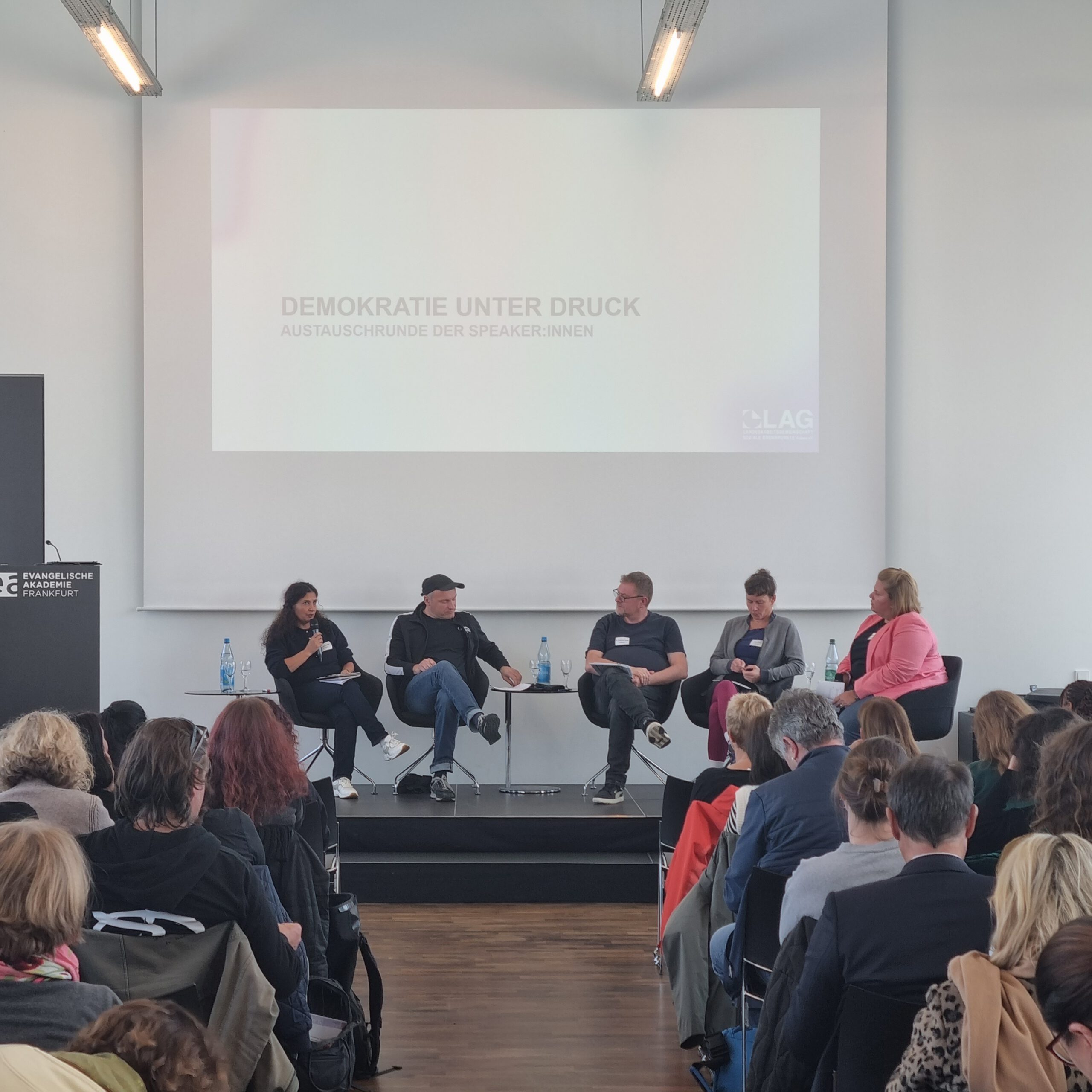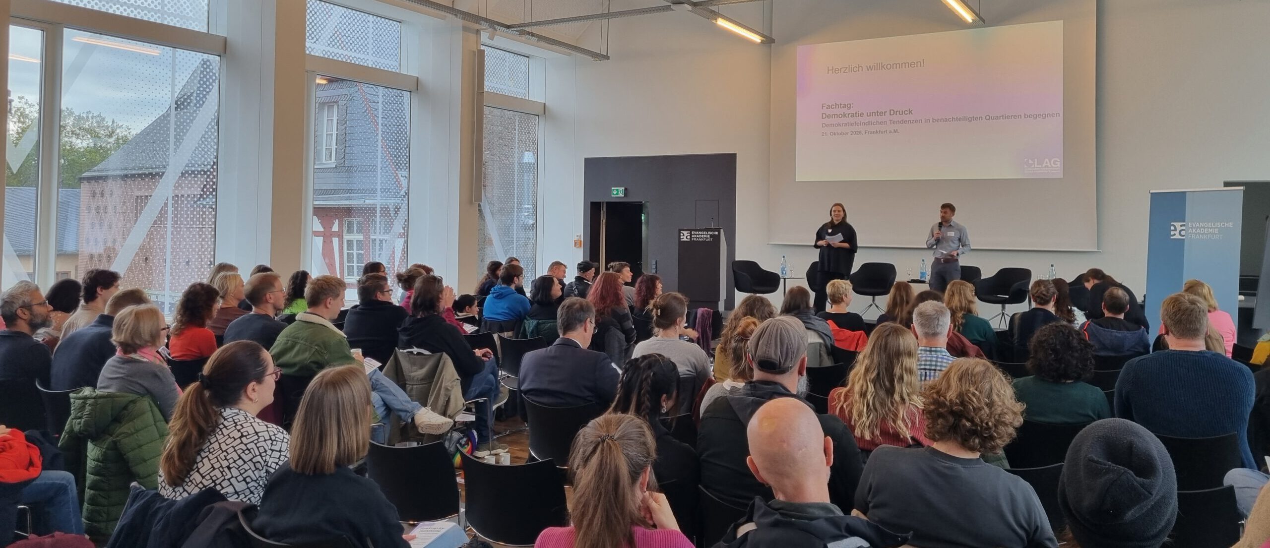 Am 21. Oktober 2025 fand in der Evangelischen Akademie Frankfurt der Fachtag „Demokratie unter Druck – Demokratiefeindlichen Tendenzen in benachteiligten Quartieren begegnen“ statt. Veranstaltet wurde der Fachtag von der Landesarbeitsgemeinschaft Soziale Brennpunkte Hessen e.V., gefördert durch das Hessische Ministerium für Arbeit, Integration, Jugend und Soziales.