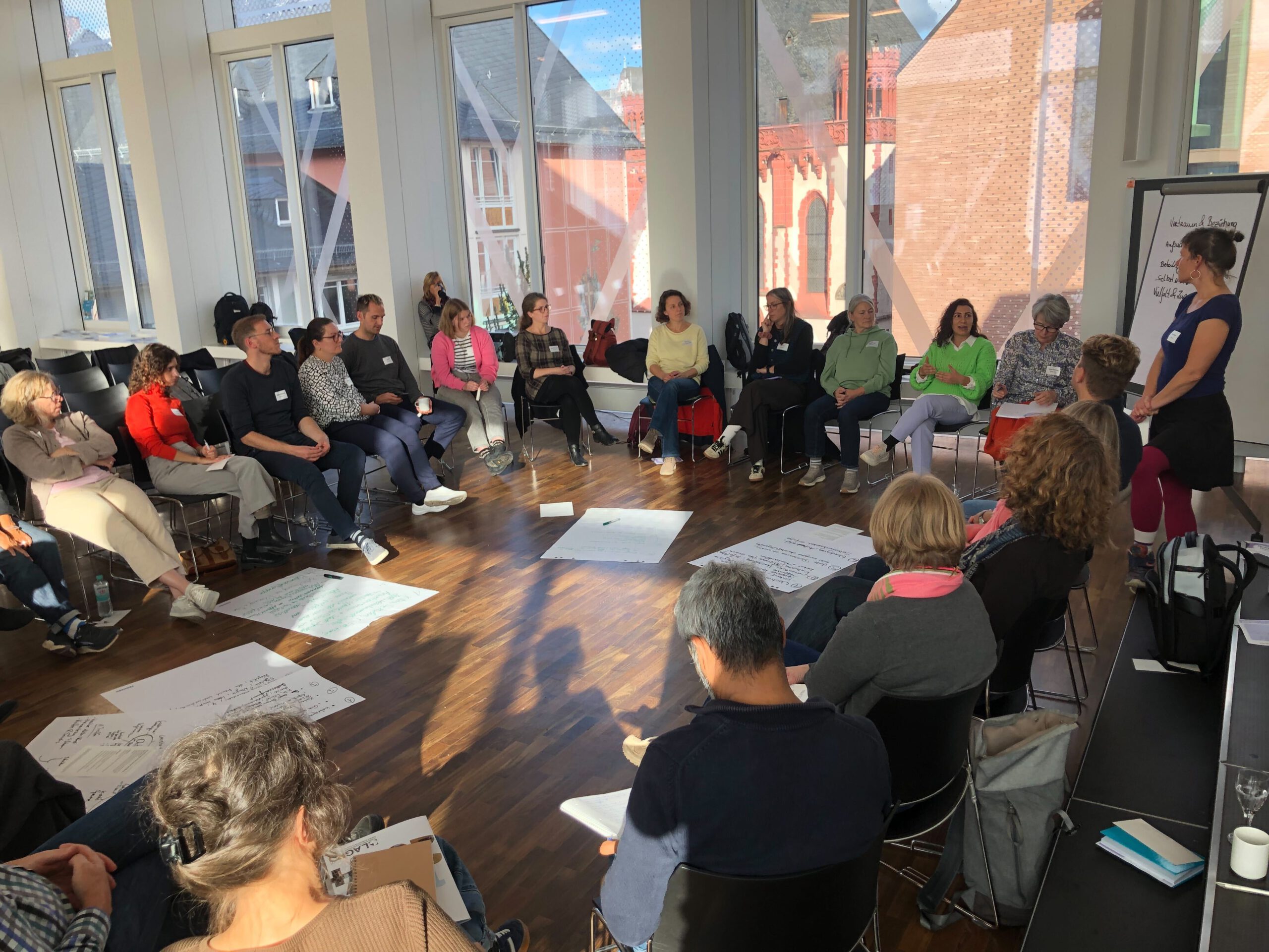 Roadmap: Alle Teilnehmenden erhielten eine Roadmap. Sie enthält Reflektionsfragen für die alltägliche Arbeit, Informationen zu den Speaker:innenn und weitere Kontaktadressen. Hier kommen sie zur Druckdatei der Roadmap.